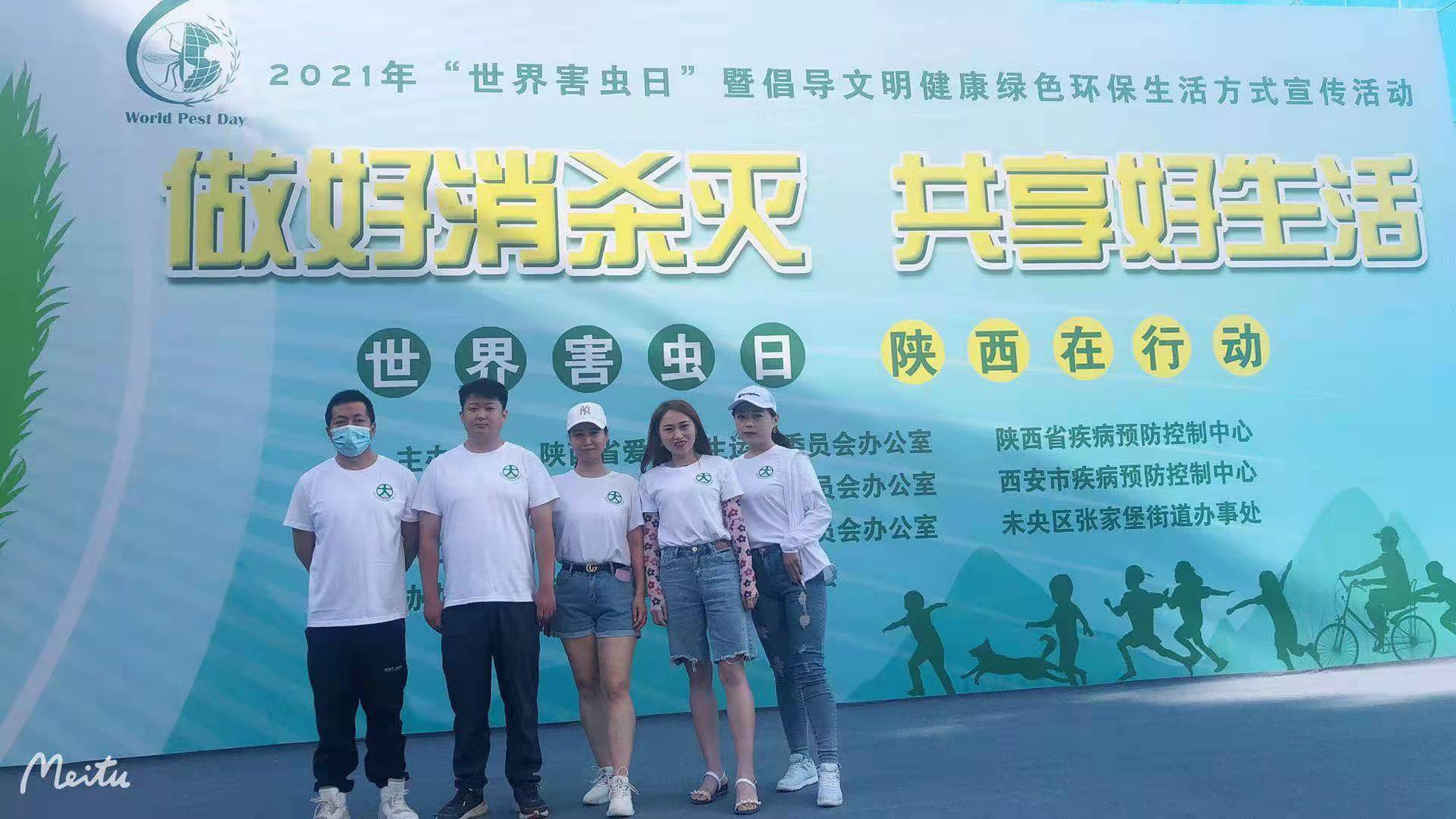6月4日 上午,西安盛龙广场上聚集了不少市民。醒目的大型桁架上写着“做好消杀灭,共享好生活”“倡导文明健康绿色环保生活方式”的宣传语。